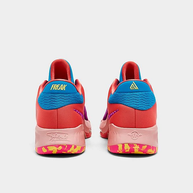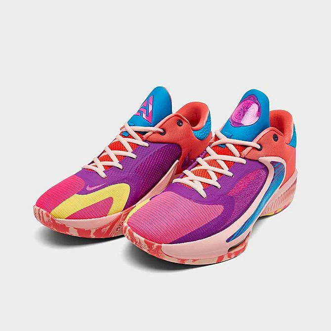 The Greek Freak is back. The two-time league MVP will welcome the new NBA season in the latest edition of his sneaker line, the Nike Zoom Freak 4 Basketball Shoes. This evolution of Giannis Antetokounmpo’s signature model features a hollowed-out forefoot with dual Zoom Air units for extra responsiveness and energy return, while further weight reduction makes for a shoe that ensures you stay light on your feet and moving dynamically on the court.